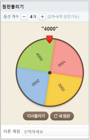 -원판돌기기 게임은 옵션 개수와 내기를 적고 '원판돌리기'를 누르면 됩니다.