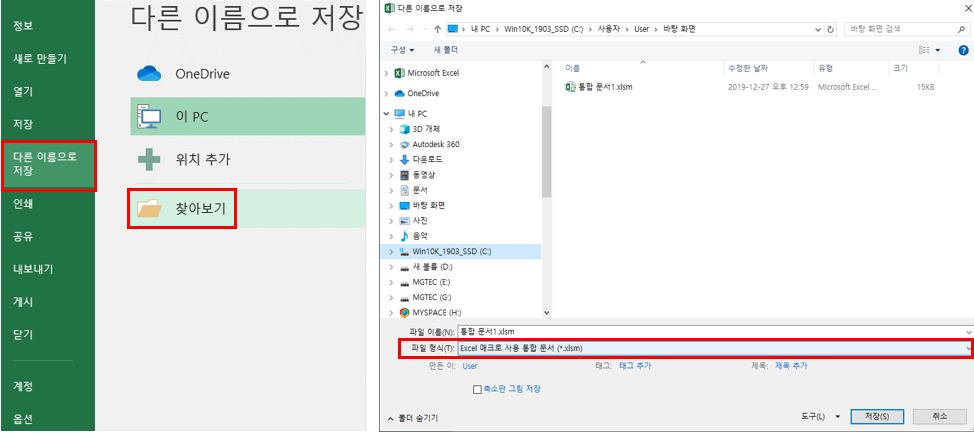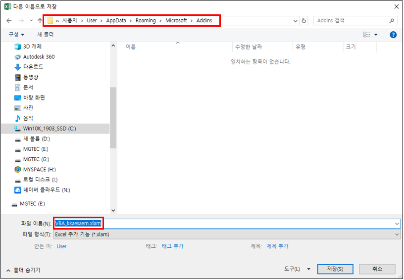 저장위치가 자동으로 바뀌게 됩니다. 원하는 파일이름으로 저장하면 됩니다.
