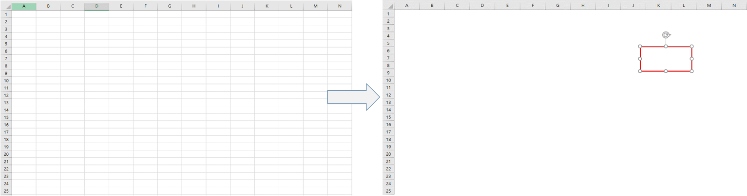 ActiveSheet.Shapes.AddShape(msoShapeRectangle, 528, 82.5, 110.25, 54.75).Select