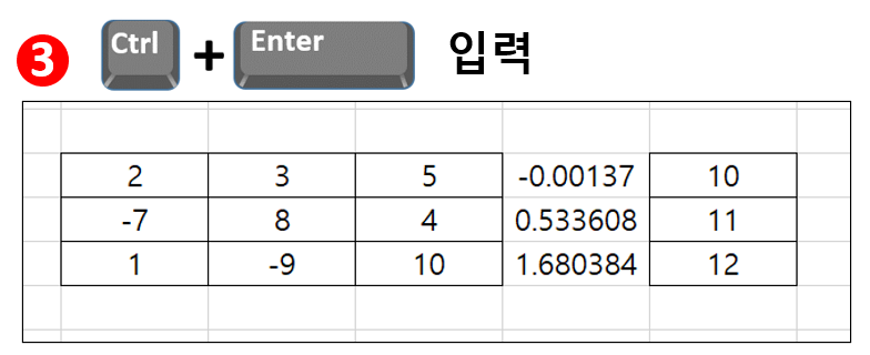 여기서 중요한데, 그냥 Enter가 아니고 [Ctrl + Enter]를 눌러줍니다. 그러면 미지수가 계산됩니다.