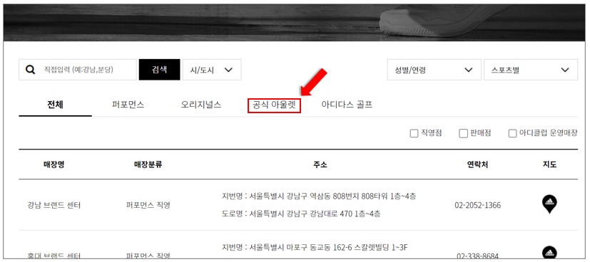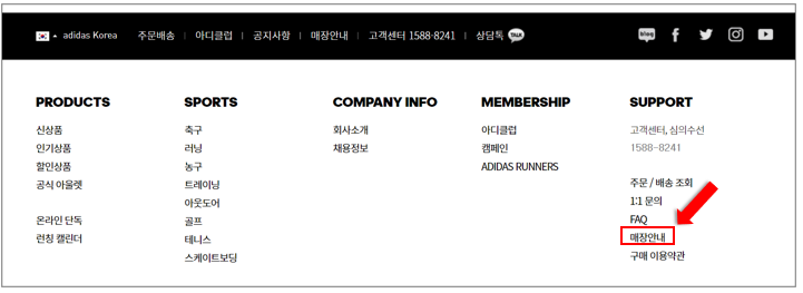 아디다스 상설할인 아울렛 매장은 홈페이지에서 찾을 수 있는데요.