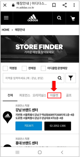 아디다스 아울렛(상설할인매장) 찾는 방법